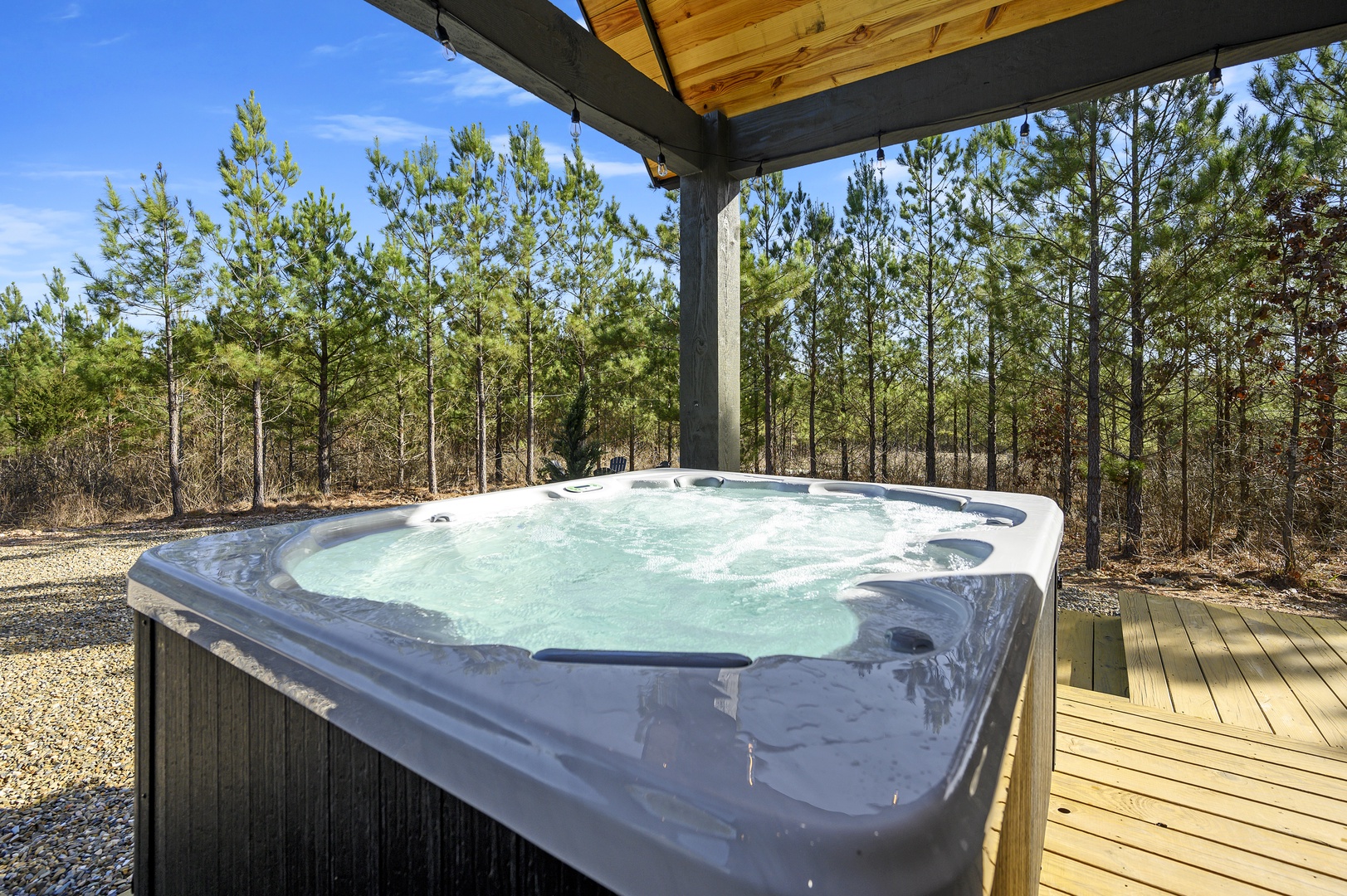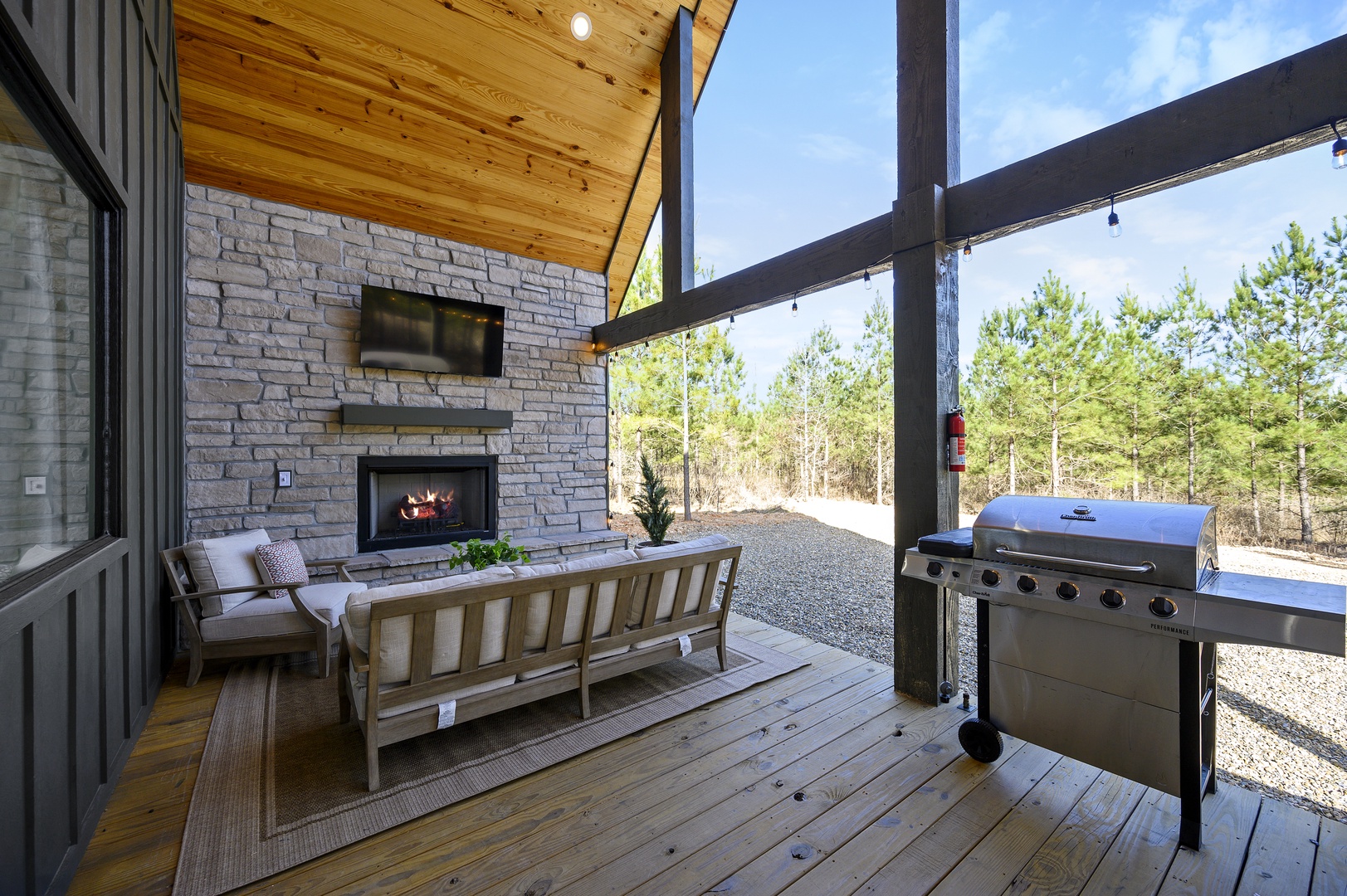 OUTDOORS: Love outdoor living? You’re sure to be spending lots of quality time outdoors enjoying the covered deck featuring a five person hot tub, gas grill with propane included, plus a relaxing seating area complete with a fireplace and TV. Steps away, you’ll find an inviting fire pit surrounded by cantina lights that’s the perfect way to end an evening roasting marshmallows and sharing stories.