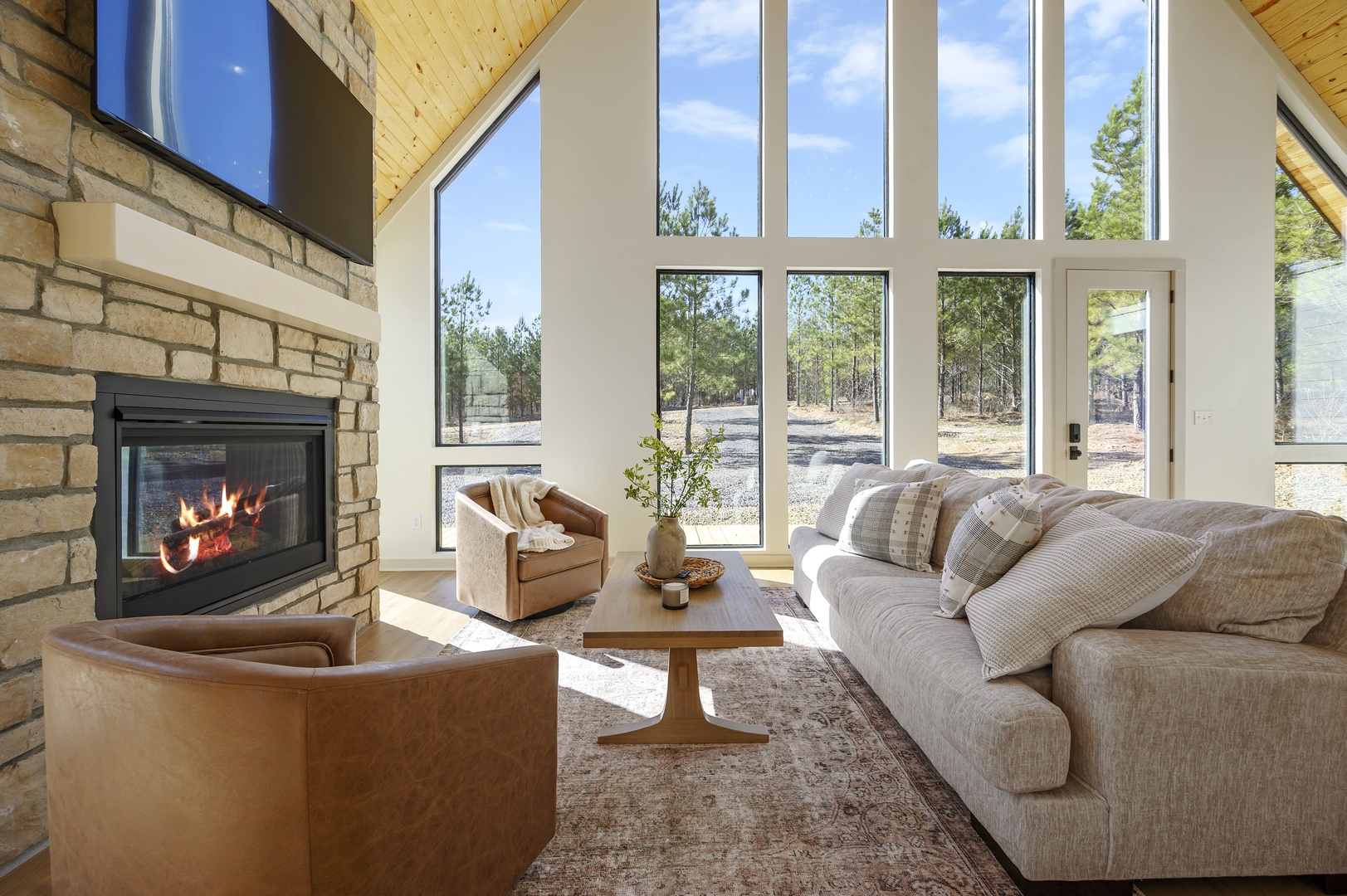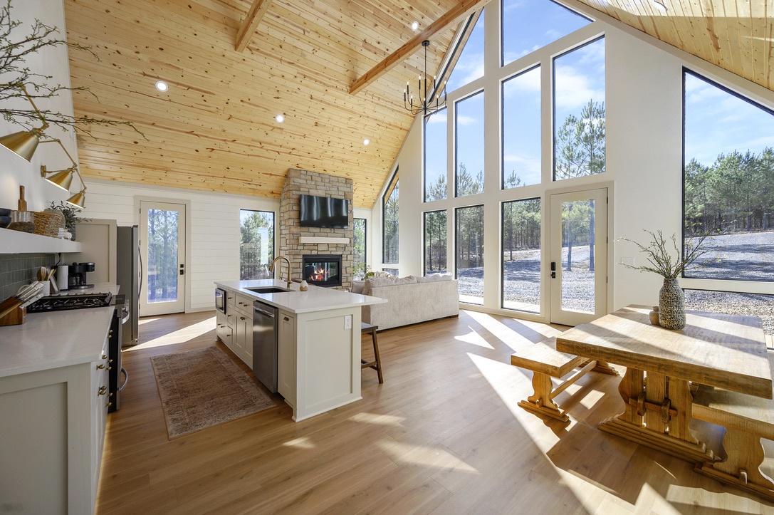 New Construction, Very Private Location, Tesla Charging and FREE access to a professional local Gym, BMW Fitness! Completed in 2023, you’ll love so many things about the unique and stylish Beautiful AF. This Scandinavian designed A-Frame cabin is a true retreat that will have you feeling relaxed from the moment you enter. Located in the new development, Winding Creek Reserve, you’re far enough away from town to feel very secluded but yet just a couple of miles from the newest restaurants, bars and entertainment in Hochatown. While at the cabin, you’ll enjoy lots of privacy (with no cabins around you) and feel truly surrounded by nature with all the soaring windows; bringing the outdoors in.