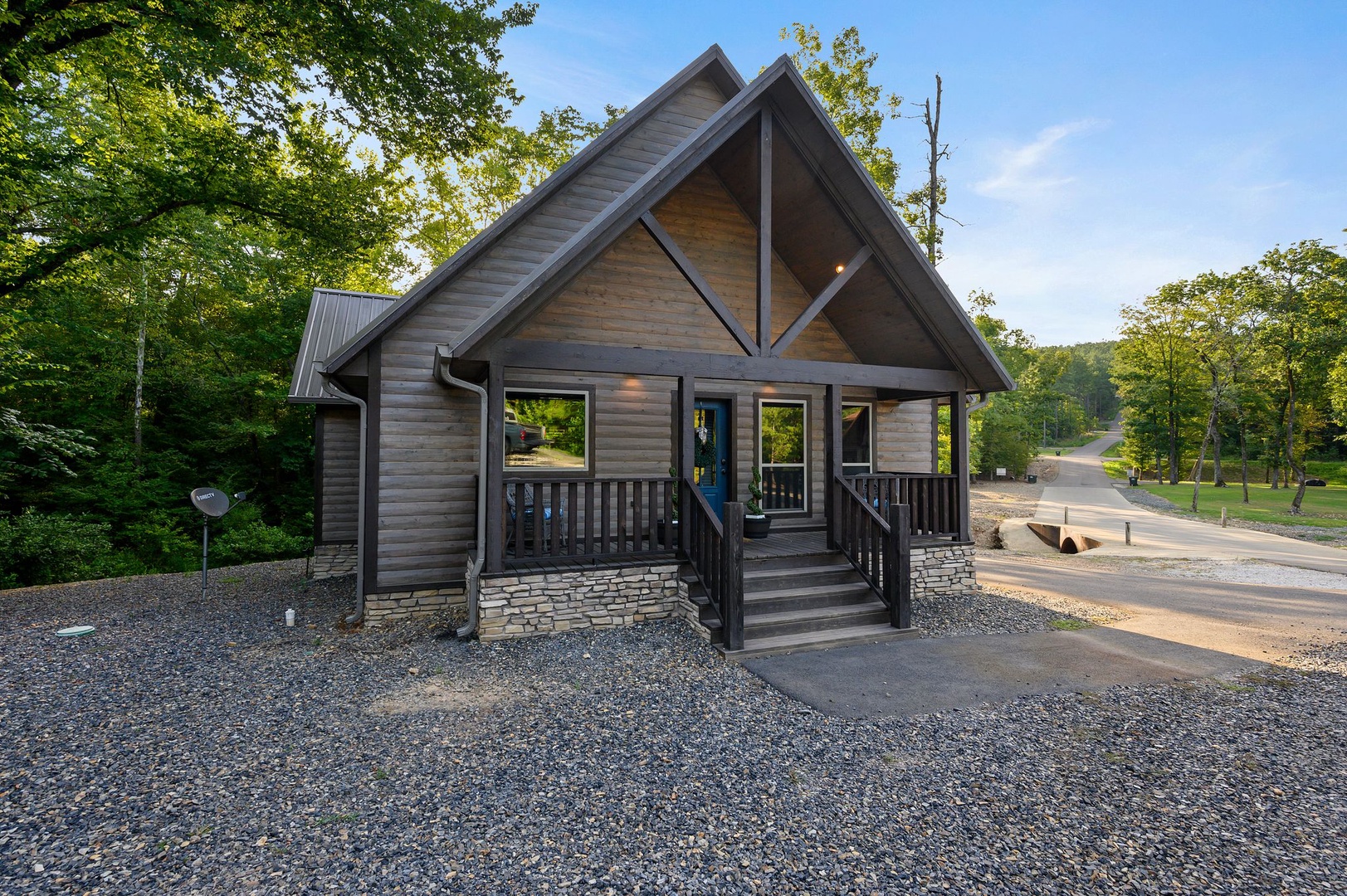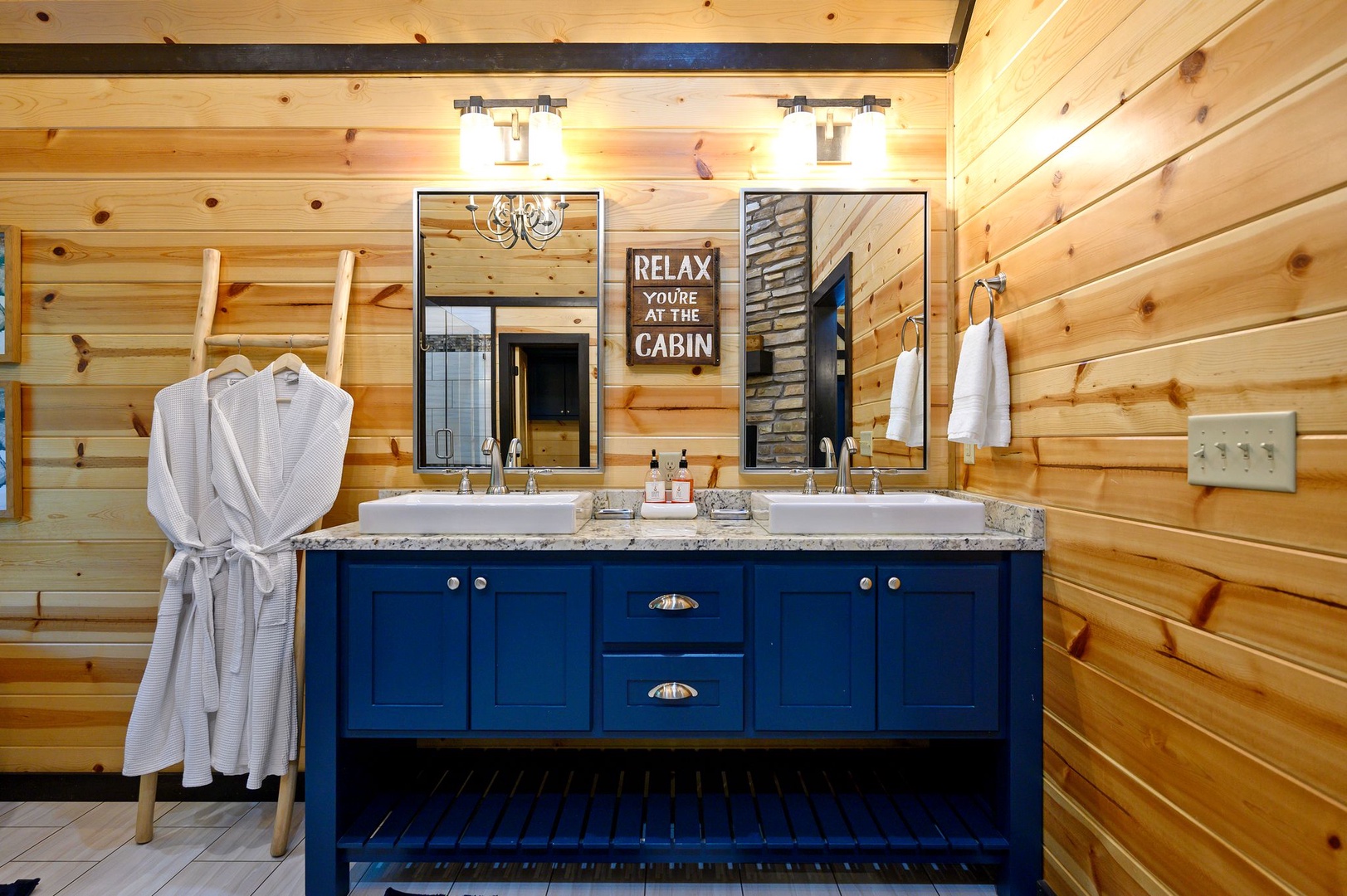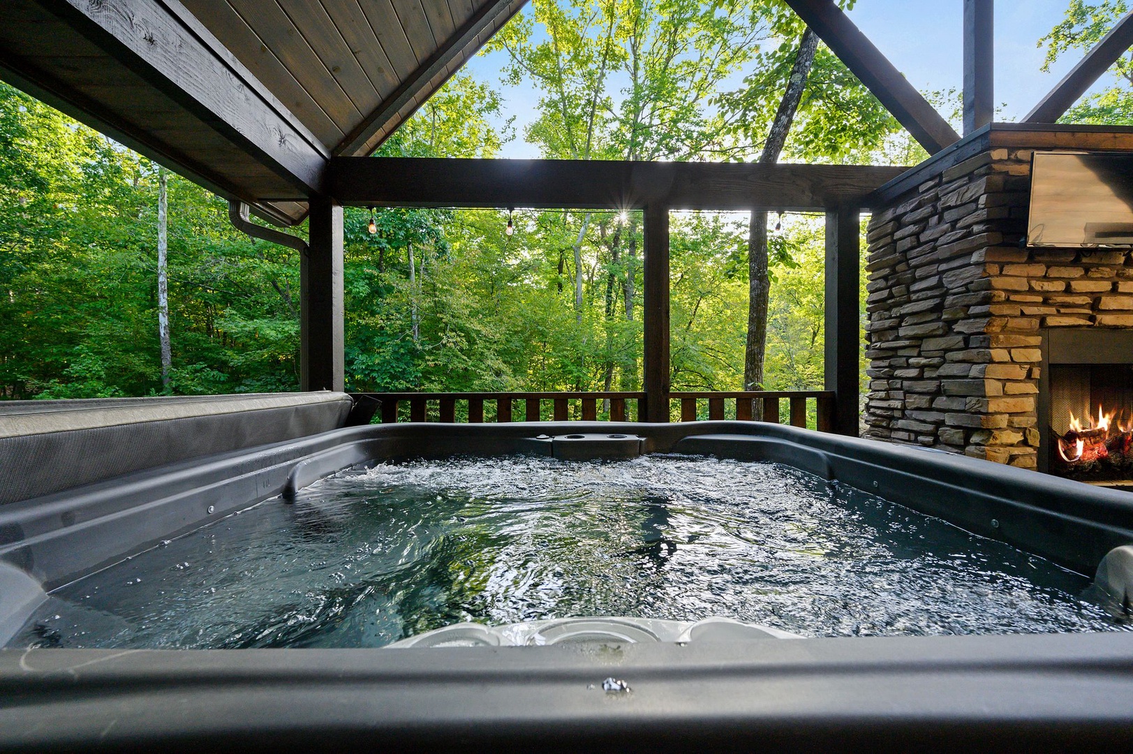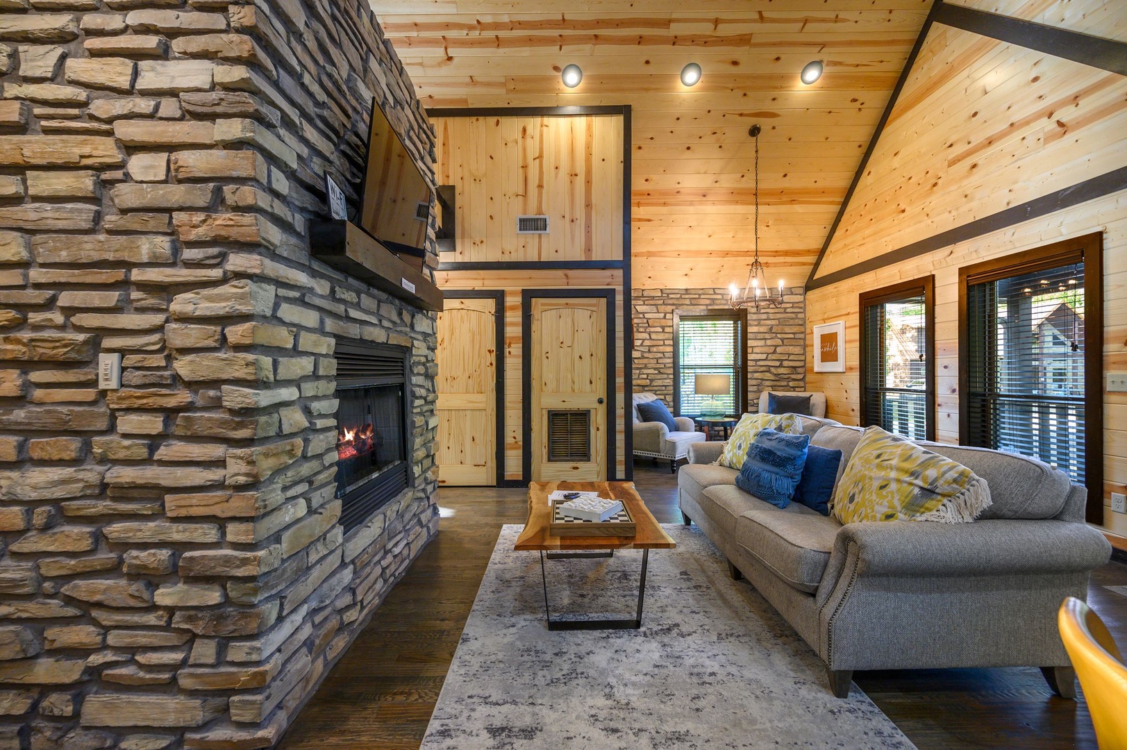 Close walking distance to local attractions, Mountain Fork Brewery, Hochatown Distilling Co, Escape Games, and restaurants. Double Barrel Creek is the ultimate couples cabin. Situated on the banks of a creek with tall pine trees. Turn-key studio style design with a double sided stone fireplace to enjoy from the main living room area or the bedroom. There is ample space in the beautifully designed eat-in kitchen for all of your cooking needs. Granite countertops, stainless steel appliances, open shelving and custom cabinets, farmhouse sink, and wine fridge. There is a separate sitting area perfect for a reading nook. The bathroom was designed with relaxation in mind and features a stone fireplace. Light the fire and take in the ambiance while soaking in the claw foot tub. Large walk-in tiled shower to enjoy as well. Take in the views of the creek from the back porch while relaxing in the hot tub.