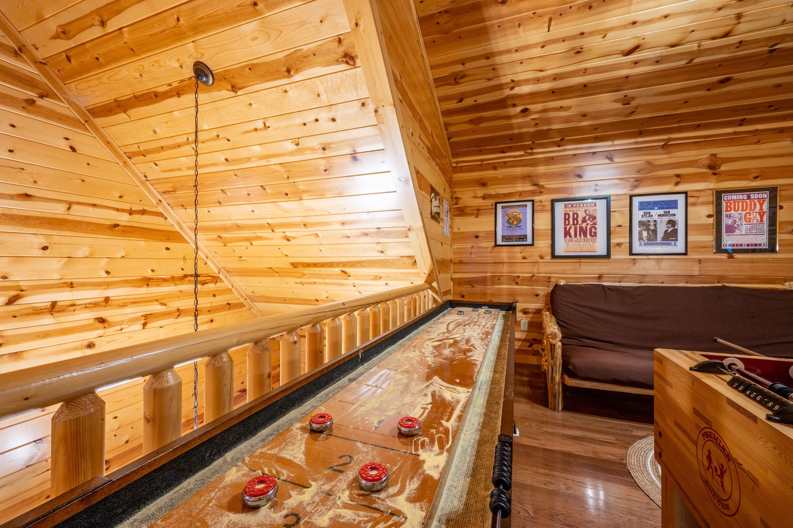 The loft provides hours of inside entertainment with a foosball table, retro video arcade cocktail table with 60 games including Frogger, PacMan, Galaga, and a bar-style shuffleboard to complete the entertainment options.