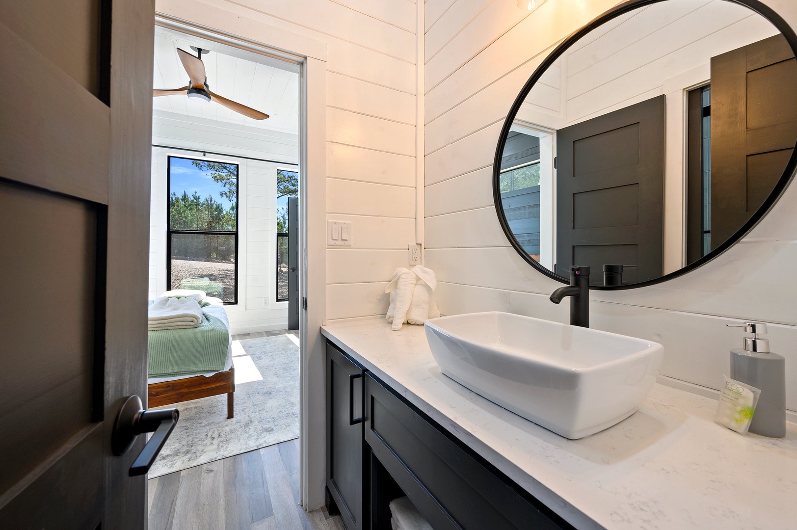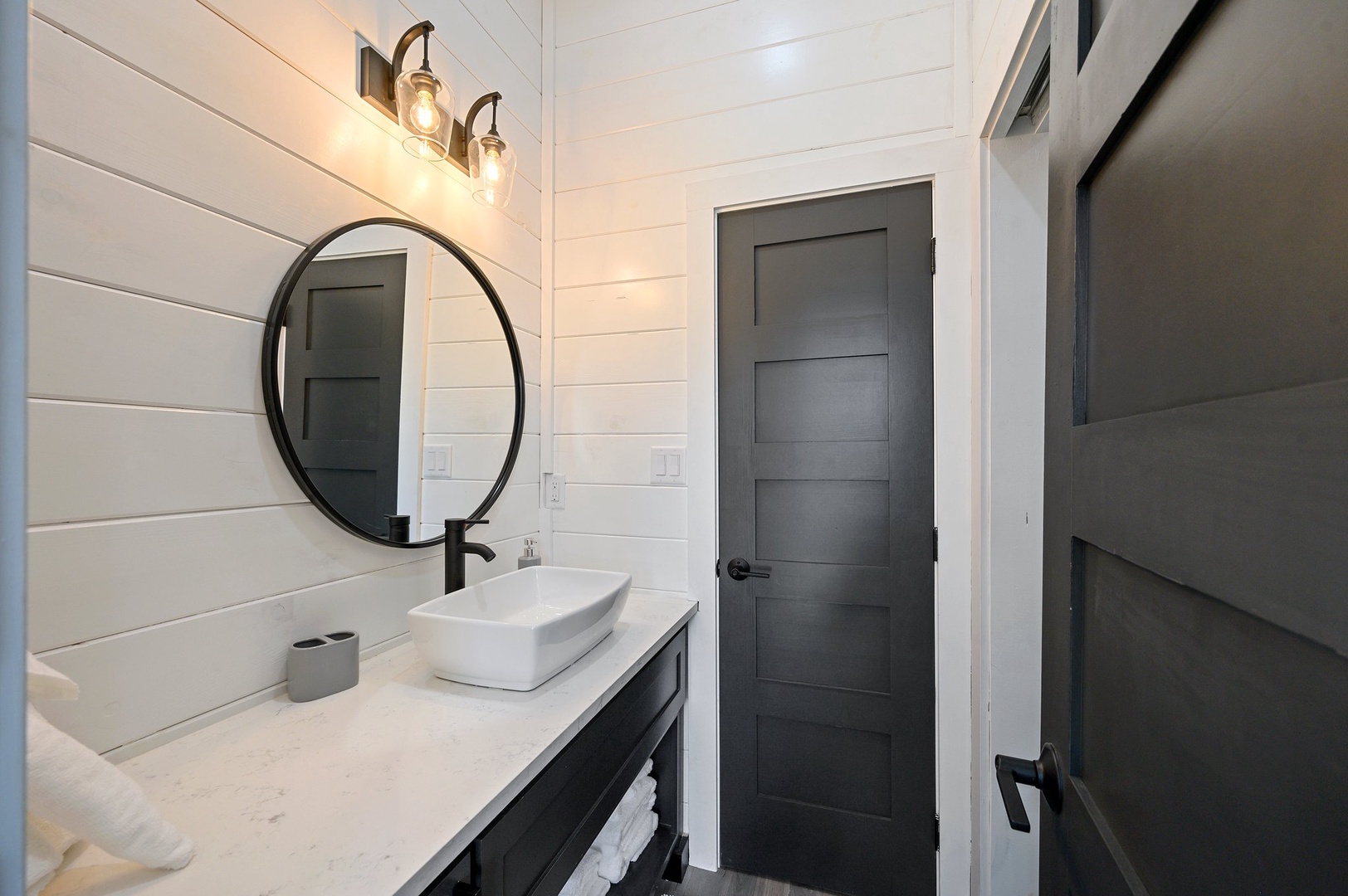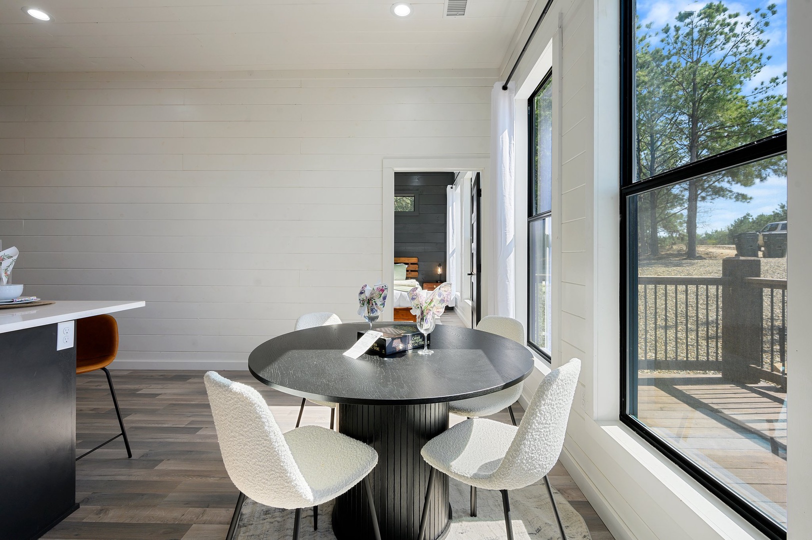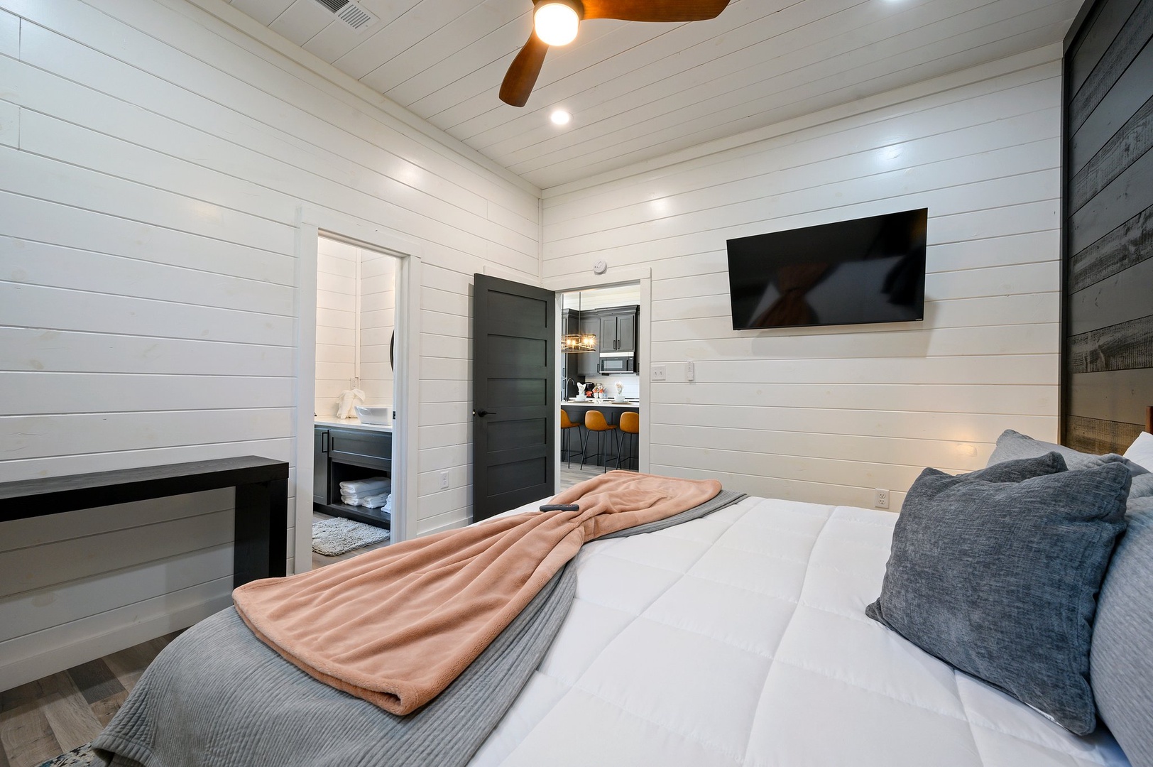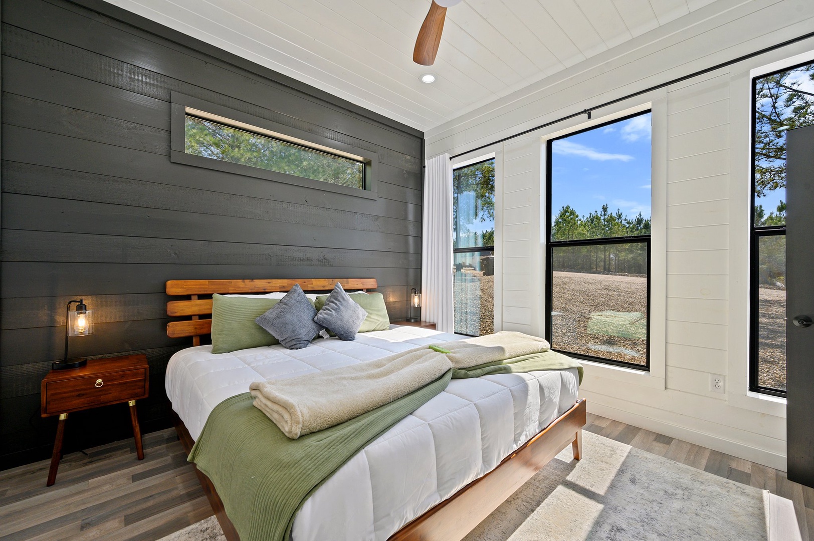 The large patio has another fireplace to keep the atmosphere warm and inviting for your open-air living. There is also a grill, outdoor bar, and dining area, to accommodate guests. For the more rustic experience, there is an open fire pit ring away from the deck where you can roast your marshmallows, build your S’mores, while enjoying the sunset as you continue to bond with your loved ones and with nature. You are a 5-minute drive from restaurants and bars such as Fish Tales Winery and Vineyard, Shady Oaks, and Buffalo Grill 8- minute drive to Hochatown