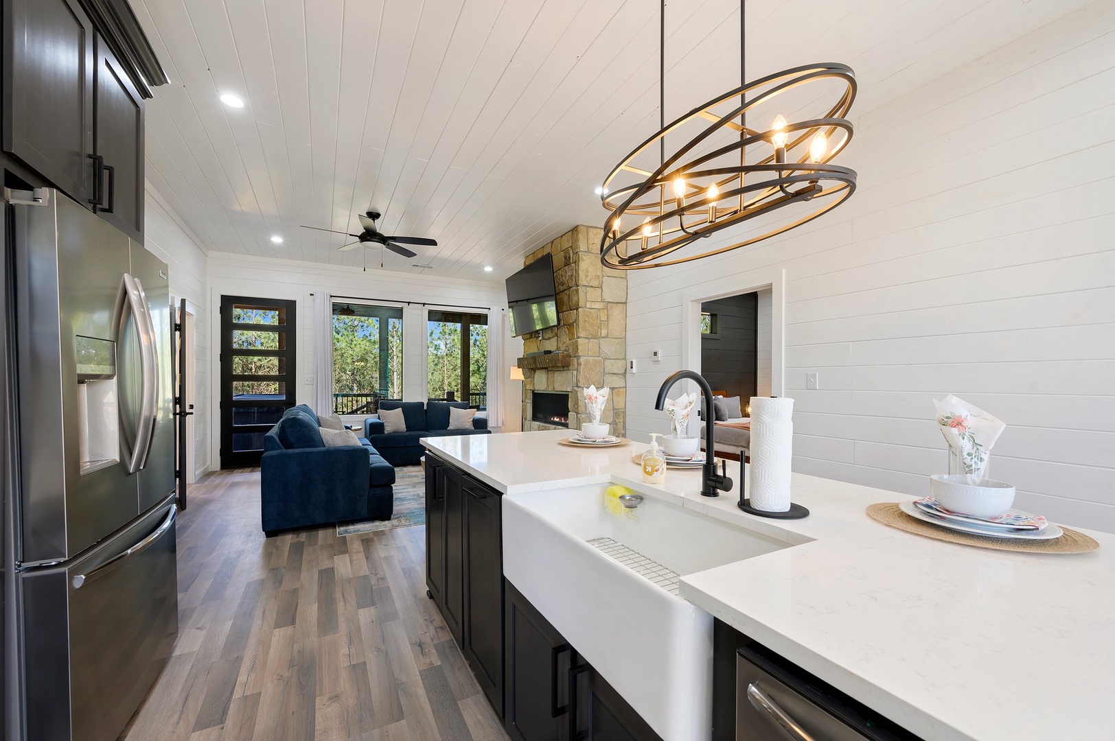 The main floor is an open floor concept living space from the kitchen to the living room to the grand fireplace. Above the fireplace is a large TV to watch a movie with the family or Sports. This living room also has grand views of the great outdoors. The kitchen is ready for all your culinary needs with all the appliances and