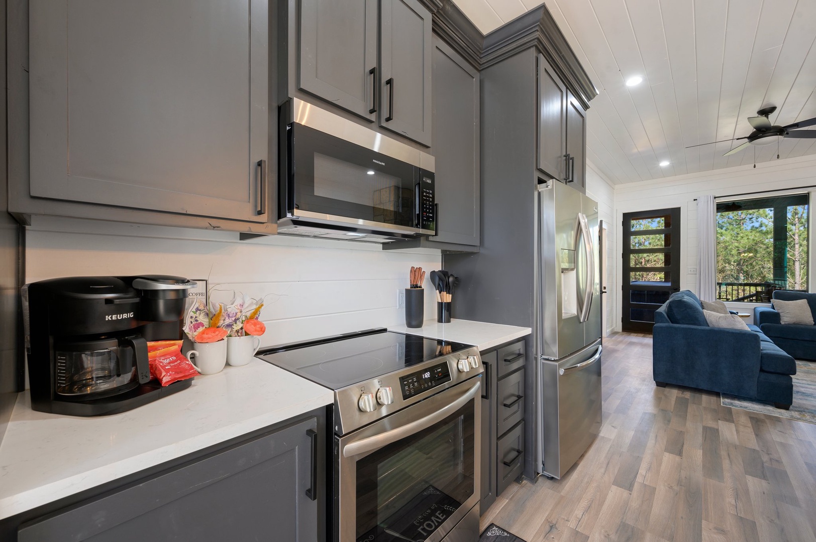 tools you will need to cook for the entire group! Serenity Skyline offers a stove with oven, dishwasher, microwave, coffee maker and a Keurig, as well as other basic cooking supplies. In each room there is a flat screen television for everyone to enjoy.