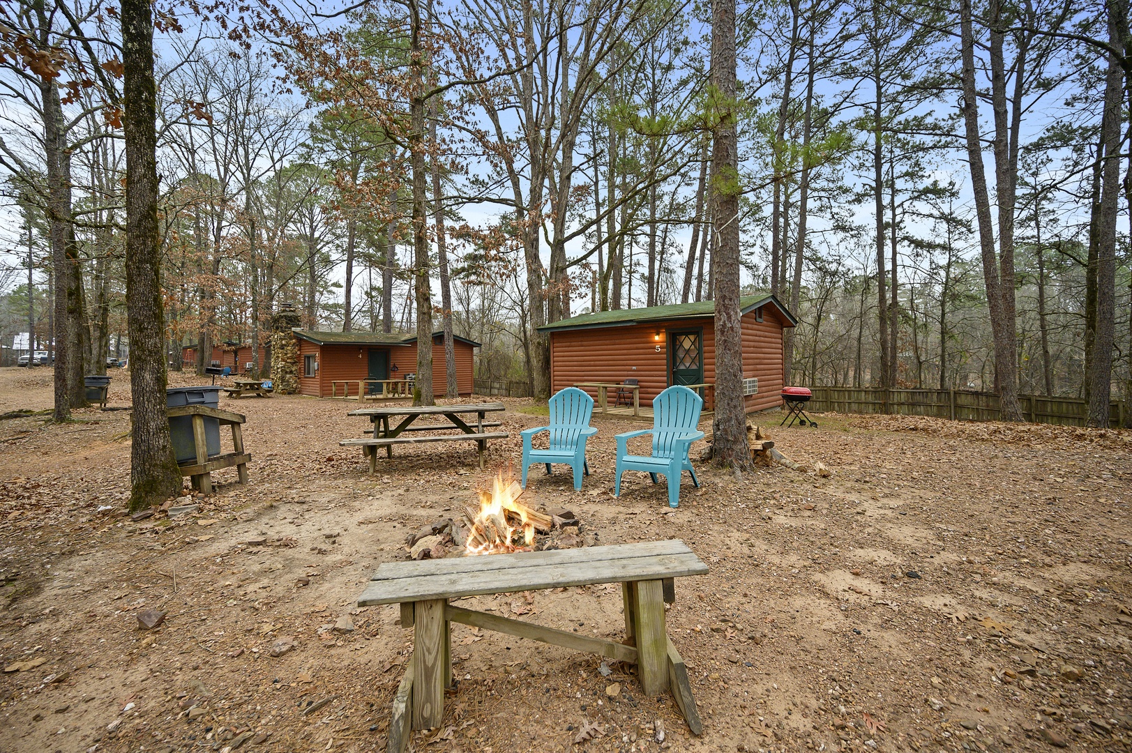 If you’re looking for budget-friendly cabins in Broken Bow, our economy cabins provide unbeatable comfort and value. One room efficiency cabins sleep up to four and our two-room economy cabin sleeps up to six. Authentic log cabins provide a king-sized bed or two queens. Each has its own wood-burning fireplace and outside campfire pit. One bedroom log cabins offer more room for couples and small families with separate living and sleeping areas and decks that overlook our two fishing ponds. Our largest two and three-bedroom cabins sleep up to ten, making them perfect for multiple families and large groups.